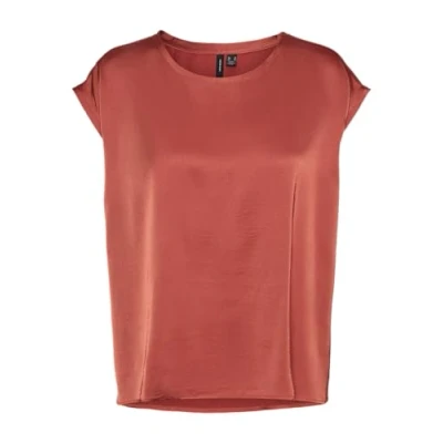 VERO MODA Women's Vmreba Wide Top WVN Ga Short Sleeved Blouse, Burnt Sienna, Large