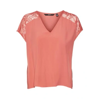 VERO MODA Women's Vmrusk Lace V Neck SS WVN Ga Top, Cayenne, S