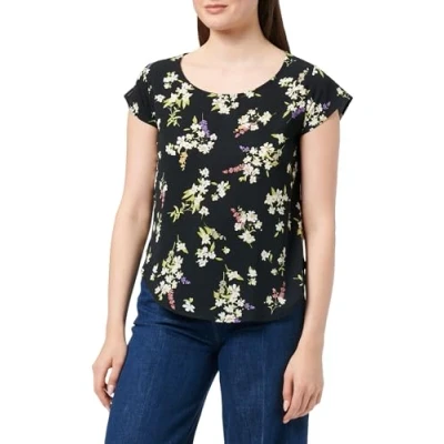 VERO MODA Women's Vmsaki SS Zip Top WVN Ga Noos T Shirt, Black/AOP: Svea Print, XXL