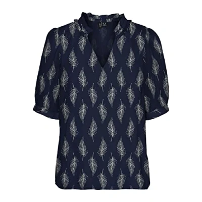 VERO MODA Women's Vmsara 2/4 V Neck Top WVN BTQ, Navy Blazer/AOP: sara, M