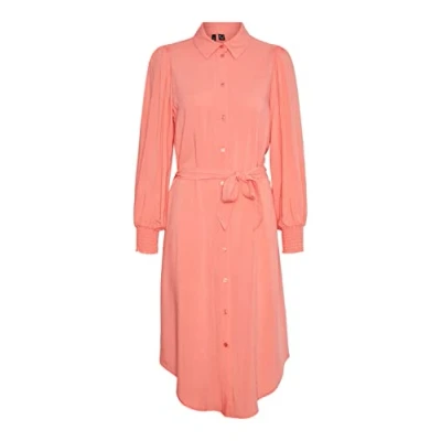VERO MODA Women's Vmsara LS Calf Shirt Dress WVN, Georgia Peach, S
