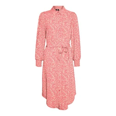 VERO MODA Women's Vmsara LS Calf Shirt Dress WVN, Irish Cream/AOP:Sara, XS