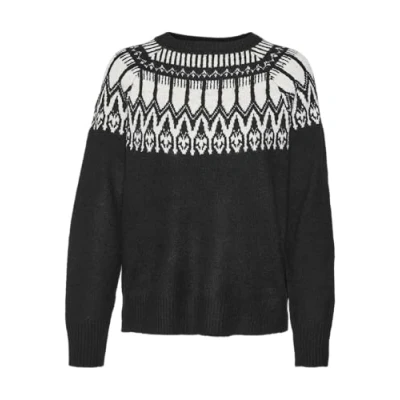 VERO MODA Women's Vmsimone Ls Nordic Pullover Ga Rep Boo Knitted Jumper, Black/Detail: w. Birch, M