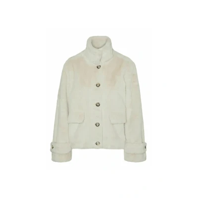 VERO MODA Women's Vmsonjaeva Short Faux Fur Jacket Ga Boo, Oatmeal, M