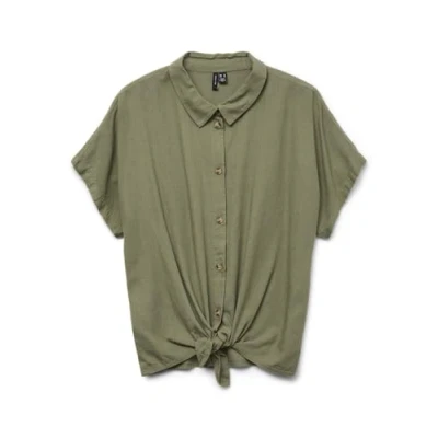 VERO MODA Women's Vmthea SS Tie Shirt WVN Noos, Deep Lichen Green, L