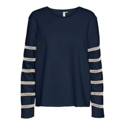 VERO MODA Women's Vmvilna L/S Sweat JRS Btq Sweatshirt, Navy Blazer/Detail: Tape in Birch, S