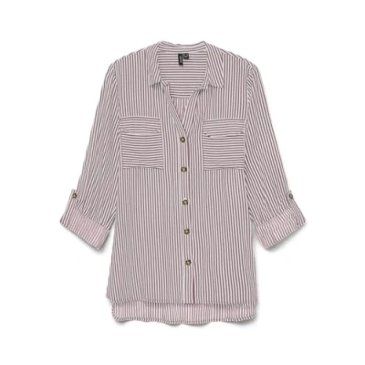 VERO MODA Women's Vmbumpy New Noos L/S Shirt Blouse, Snow White/Stripes: Nostalgia Rose, Large