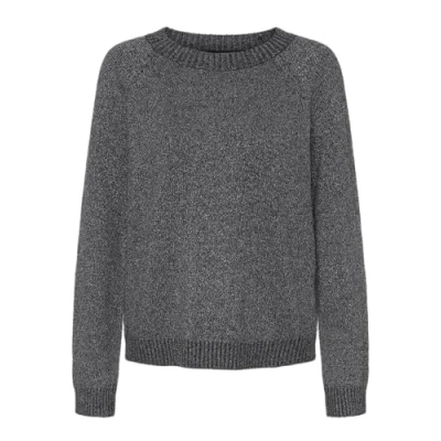 VERO MODA Women's Vmdoffyshine LS O Neck Blouse Rep Noos Knitted Jumper, Asphalt/Detail: w. Silver Lurex, Large