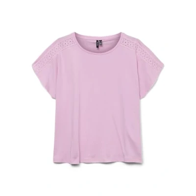 VERO MODA Women's Vmemily Ss Lace Tape Top JRS Ga Noos, Bonbon, M
