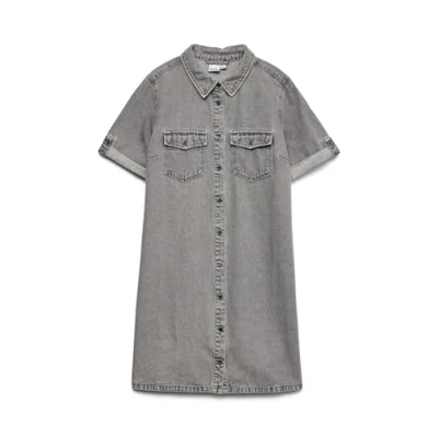 VERO MODA Women's Vmjennie Ss Short Dress Mix Noos, Medium Grey Denim, L