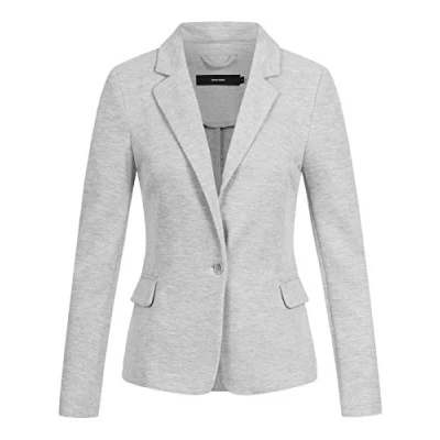 VERO MODA Women's Vmjulia Ls Blazer DNM Noos Suit Jacket, Grey (Light Melange Light Melange), 32R (Manufacturer Size: 42)