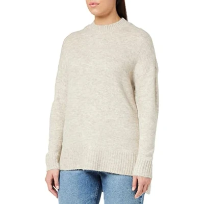 VERO MODA Womens Vmlefile Oversize Boxy Blouse Ga Noos Sweater, Birch/Detail: with Melange, S UK