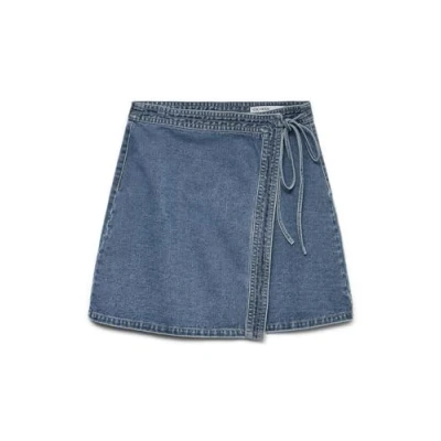 VERO MODA Women's Vmliza Mr Short Denim Wrap Skirt Ga Noos, Medium Blue (Medium Denim), XS