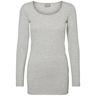 VERO MODA Women's Vmmaxi My Ls Soft Long U Neck Noos Sleeve Top, Grey (Light Melange), 34 (Manufacturer Size: X Small)