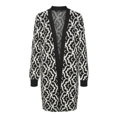 VERO MODA Women's Vmnancy Ls Open Cardigan Boo Sweater, Black/Detail: w. Birch Flower Print, S