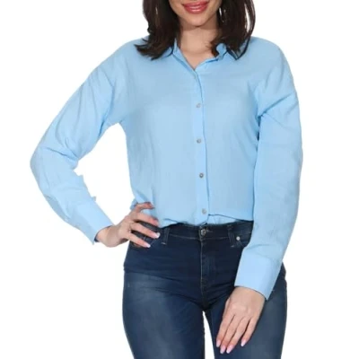 VERO MODA Women's Vmnatali Nia LS Loose Shirt WVN Ga Noos, Airy Blue, XS