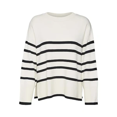 VERO MODA Women's Vmsaba LS O Neck Pullover Ga Noos Sweater, Birch/Stripes: w Black, M