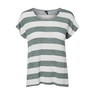 VERO MODA Womens Vmwide Stripe S/L Top Noos T Shirt, Green, L UK