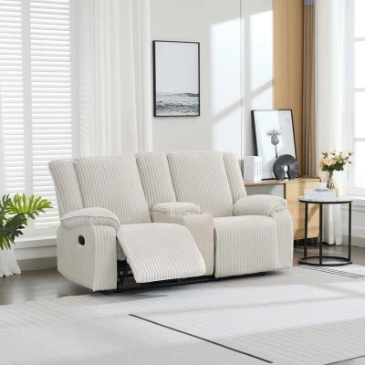 Verona 2 Seater Jumbo Cord Manual Recliner Sofa w Drinks Console (Beige)