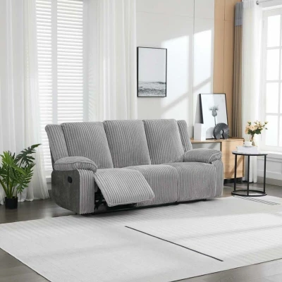 Verona 3 Seater Jumbo Cord Manual Recliner Sofa (Grey)