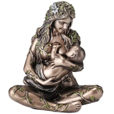 Veronese Design 4 3/8 Inch Mother Earth Gaia Nurturing Baby Resin Miniature Hand Painted Bronze Finish Sculpture