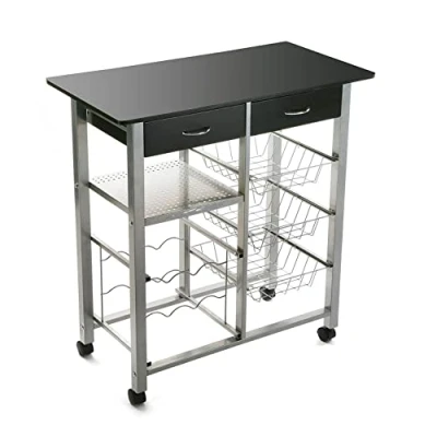 Versa 15810410 Kitchen Trolley with Integrated Bottle Rack 82 x 40 76 cm 4 Wheels White Black