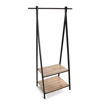 CHARACTERISTICS - Coat rack ideal for the entrance hall or entrance of your home. The coat rack has a height of 150 cm, with a length (depth) of 45 cm, and a width (from side to side) of 75 cm. The weight is 8 kg and is made of metal structure and wooden shelves. Colour: Black structure and brown shelves. Includes two shelves at the bottom for use as a shoe rack STABLE - The coat rack is stable, made of metal. The base is also firm and weighs enough so that the coat rack and whatever you want to hang on it, do not wobble. In addition, the hooks are long enough to hang any type of garment. The load capacity is 20 kg. MULTIFUNCTIONAL - The coat rack includes hooks that will allow you to hang many objects, coats, bags, hats, etc. The finish of the hooks protects your clothes / hats / coats from tears when hanging. We have different colours depending on your needs. Choose the one that suits you best. MINIMALIST STYLE - Nordic, Scandinavian; It will create an intimate space. It will be perfect to decorate your living room, the entrance of the house, the hallway, your bedroom or office, as well as useful. EASY ASSEMBLY - Quick and easy assembly. Includes instructions. It is enough with one person and no additional tools are necessary for its assembly. You will have it ready in 5 minutes