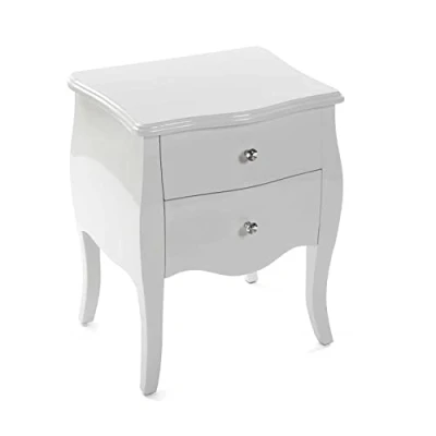 Versa Cagliari Bedside Table Small or Side for Bedroom Living Room, with 2 Drawers, Dimensions (H x L W) 60 39 50 cm, Wood, White