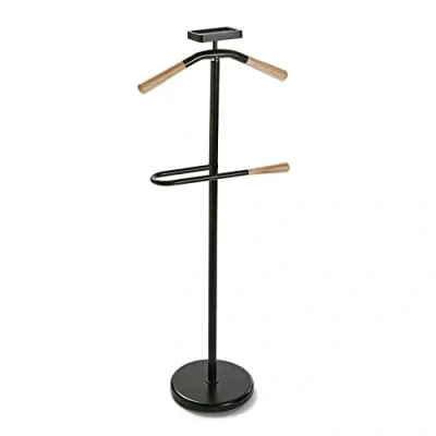 CHARACTERISTICS - Modern night keeper with perfect size for the room or bedroom. The hunk has a height of 108 cm, with a length (bottom) of 44 cm, and a width (side to side) of 25 cm. The weight is 3.8 kg and is made of metal with bamboo wood details. Colour: Black and Wood. STABLE - The hunk is stable, made of metal. The base besides firm weighs enough so that the hunk and whatever he wants to hang on it, do not wobble. In addition, the hanger and hanger are long enough to hang any type of garment. The load capacity is 20 kg. MULTIFUNCTIONAL - The night hunk includes a hanger for hanging jackets, shirts, jerseys, coats, dresses, etc and a hanger for pants or skirts. The hanger finish protects your clothes from breakage when hanging. SCANDINAVO STYLE - Nordic design. It will create an intimate space. It will be perfect for you to decorate your bedroom, living room, office or dressing room EASY ASSEMBLY - Quick and easy assembly. Includes instructions. It is enough for one person and no additional tools are necessary for its assembly. You will have it ready in 5 minutes