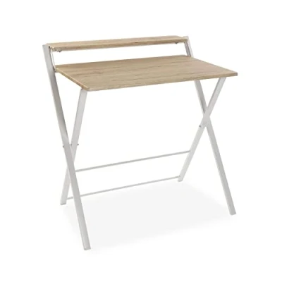 COMPACT DESIGN Maximise your space with a foldable desk that fits perfectly in small home offices or study areas. STURDY CONSTRUCTION Enjoy a reliable workspace with a robust MDF surface and a durable powder-coated metal frame. MODERN AESTHETIC Enhance your decor with a sleek, minimalist design in a light wood tone and white finish. VERSATILE USAGE Ideal for laptops, writing, or crafting, this desk adapts to your needs, whether temporary or permanent. EASY STORAGE Foldable design allows for effortless storage, making it perfect for those who value flexibility in their workspace.