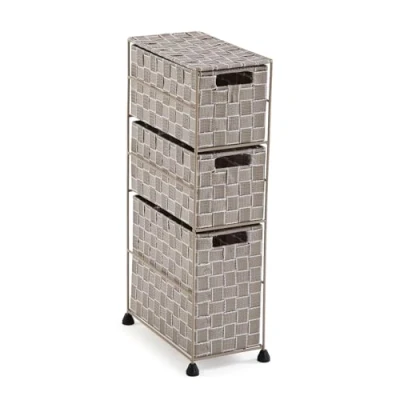 FEATURES - The Nilo drawer unit is designed to provide an optimal storage solution in limited spaces, such as the bathroom. With a height of 57 cm, a length of 15.5 cm, and a width of 28 cm, it is compact and very suitable for placement in limited areas. It has a lightweight of 1.8 kg and is made of resistant and easy-to-clean materials, ideal for the humid environment of the bathroom. Color: Beige with a design that incorporates an elegant and modern texture. LARGE CAPACITY AND COMPACT - Despite its reduced dimensions, the Nilo drawer unit offers a surprising capacity to store various bathroom items. Its vertical construction maximizes upward space, allowing essential items to be organized without taking up too much space. It is perfect for keeping personal grooming accessories organized next to the sink or in any corner of the bathroom. MULTIPLE USES - Nilo is ideal for organizing bathroom products such as towels, shampoos, soaps, and more. Its versatile and durable design also makes it suitable for storing small items in other areas of the home, like the kitchen, where it can serve as an additional storage unit for spices or utensils. MODERN STYLE - The Nilo drawer unit has a contemporary design that adapts to the aesthetics of any home. Its black finish and texture provide a sophisticated and current look that matches various decorative styles, from minimalist to the most avant-garde. ASSEMBLY - The Nilo drawer unit is designed to be easy and quick to install, without the need for tools or complicated procedures. Its manageable size allows you to place it directly in the desired location, and its lightness facilitates movement to adjust its position as needed.
