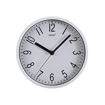FEATURES - Wall clock for living room, kitchen, office or other rooms. It has a circular shape and a diameter of 20 cm, with a length (bottom) of 4.2 cm, and a width (side to side) of 20 cm. The weight is 0.6 kg and is made of polypropylene. Color: White dials and box, black hands and numbers. The watch comes with hanging parts and instructions included, and is quick and easy to install. Made with lightweight and durable polypropylene plastic, the watch is easy to dust off or wipe with a damp cloth for cleaning. PRECISE MACHINERY - High precision machinery Ostar. The mechanism with continuous movement ensures precise time and an absolutely pleasant environment DIAMETER - 20 centimeters. With large decorative numbers in black and modern style. SILENT MOVEMENT - The Raven wall clock, which features a silent mechanism, does not emit distracting or buzzing sounds. Its simple look lets you easily know what time it is, while bringing a simple and functional design element to any room. Batteries - Batteries are not included with the watch. A single required 1.5V / AA battery