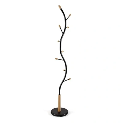 Versa Swindon Minimalist Style Floor Coat Rack, with 9 Hooks or Hangers for Clothes Bags the Hallway, Measurements (H x L W) 180 30 cm, Metal and Wood, Black