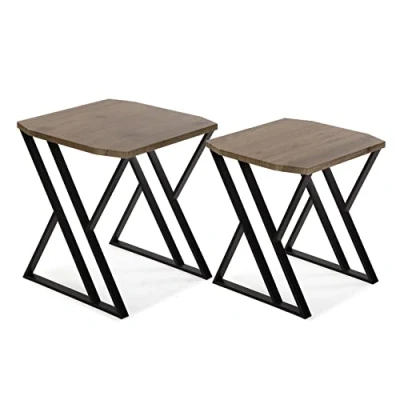 Versa Tulsa Side Table for Living Room, Bedroom or Kitchen Modern Low Table, Set of 2, Measures 50 x 45 cm (H L W), Wood and Metal, Colour: Brown Black