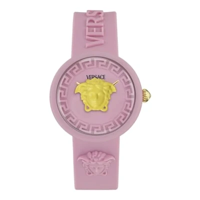 r kids is a playful 32mm watch, specially designed for kids who love to stand out. Featuring vibrant pop colors and a contrasting floating Medusa, this timepiece brings iconic style to every tick. This Analogue watch is equipped with a Swiss Made Movement High quality Pink Silicone strap, measuring 19 cm in length and 15 mm in width, with a Buckle Case diameter: 32 mm,case thickness: 11.4 mm, case colour: Pink and dial colour: Pink Water resistant: 3 bars-Weight: 50 g The watch is delivered in an original gift box and has a warranty of 2 years