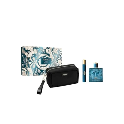 Versace Eros Eau de Parfum Gift Set 2025 - 100ml EDP, 10ml Travel Spray and Toiletry Pouch