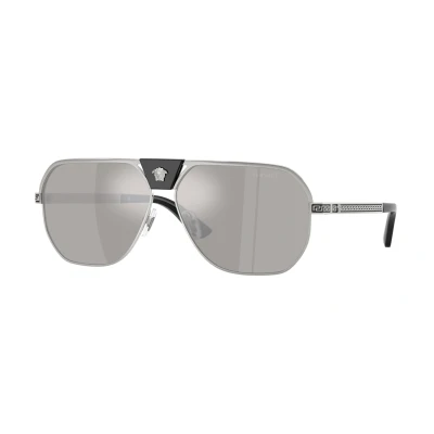 Versace Man VE2294 10006G Sunglasses Metal Silver Grey Squared Mirror