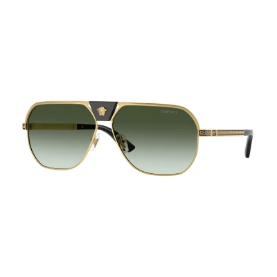 Versace Man VE2294 10028E Sunglasses Metal Gold Green Squared Normal Nuanced