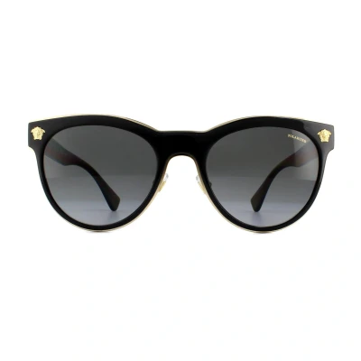 Secret SalesVersace Sunglasses VE2198 1002T3 Black Grey are a chunky cat-eye style crafted from acetate. The outer edge of the frame front is trimmed with metal to match the Medusa head logos found at each corner and the Versace text logo on each temple. Adjustable nose pads guarantee a customised fit for comfort.