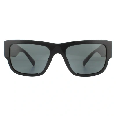 Secret SalesVersace Sunglasses VE4406 GB1/87 Black Dark Grey are a large, sleek rectangular design made from lightweight acetate. Versace's golden greca design features on each temple.