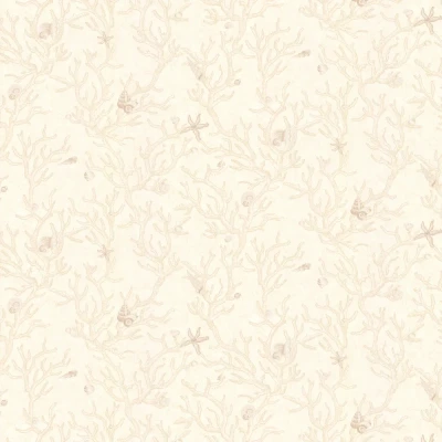 A pretty sea coral design, with decorative shell and starfish details - perfect for the bathroom - on a textured vinyl. Shown in the cream colourway. Wide width roll. Search star fish.Sorry samples not available and stock strictly limited.