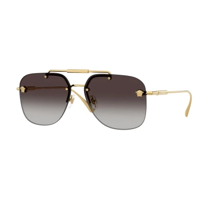 Versace Woman VE2296 100284 Sunglasses Metal Gold Grey Squared Normal Nuanced