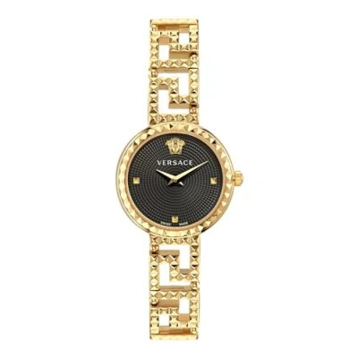 This Versace Greca Goddess Analogue Watch for Women is the perfect timepiece to wear or to gift. It's Gold 28 mm Round case combined with the comfortable Gold Stainless steel watch band will ensure you enjoy this stunning timepiece without any compromise. Operated by a high quality Quartz movement and water resistant to 5 bars, your watch will keep ticking. Description This elegant jewelry timepiece is characterized by a feminine 28mm case body enriched with 3d Medusa at 12 o’ clock. This Analogue watch has a Swiss Made Movement This high quality watch is an incredible eye-catching Women watch The Analogue watch has a Swiss Made movement Case diameter: 28 mm,case thickness: 7 mm, case colour: Gold and dial colour: Black