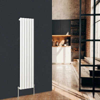 General description This designer radiator serves as a striking statement piece for any room in your home. With its elegant design, it will undoubtedly become the focal point of your suite while delivering impressive heat output. Its compact footprint is perfect for saving valuable space, ensuring that you can maximize your living area without sacrificing style. Ideal for contemporary suites, the oval design is available in a variety of sizes and colors to accommodate any decor or personal preference. Whether you prefer a sleek matte finish or a glossy look, there's an option to suit your needs. Plus, each radiator comes with a 10-year Fit and Forget guarantee, providing you with peace of mind and assurance of long-lasting quality. Transform your space with this perfect blend of functionality and aesthetic appeal! Technical specifications Dimensions: 1600 x 355 mm Number of bars: 6 Depth when fitted: 90 mm Pipe Centres: 425 mm Heat output: 2273-2884 BTU (in T50 - T60) Pressure tested