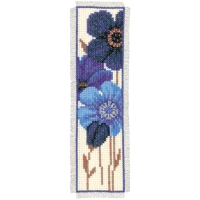 Vervaco Bookmark Blue Flowers 2 Counted Cross Stitch Kit, Multi Colour