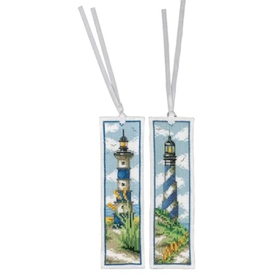 VERVACO Bookmark Cross Stitch Embroidery Kits Counted Set Lightthouses of 2 DIY Adults Reading Accessories Gift Pattern Pack Approx. 6 x 20 cm