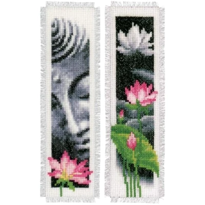 Vervaco Bookmarks: Lotus & Buddha (Set of 2), Polyester Cotton, Multi Colour, 40 x 2 20 cm