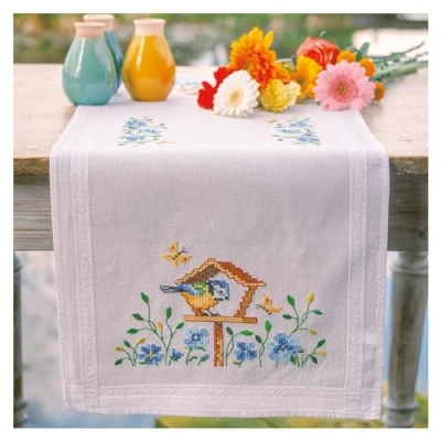 Chemin de table imprimé,, avec bord incrusté,, Fabric à broder: 100% cotton, Fil: 100% cotton DMC,, Carte de fils,, Instruction dans huit langues,, Diagramme agrandi,, Aiguille - Photo,, Le dessin imprimé disparaîtra au lavage,, Confectionné,, Manufacturer: Verachtert