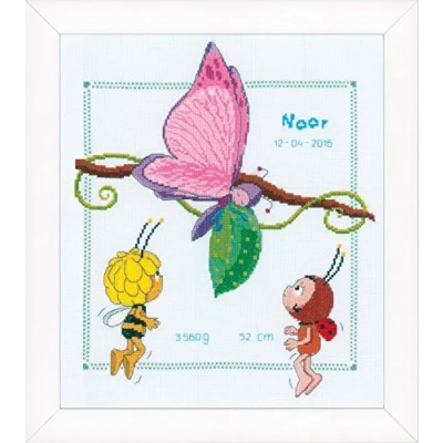 Vervaco Counted Cross Stitch: Birth Record: Maya, Lara & Beatrice, COTTON, NA, 27 x 23cm