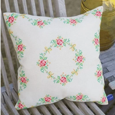 Vervaco Counted Cross Stitch Cushion: Garland and Roses, Multi Colour